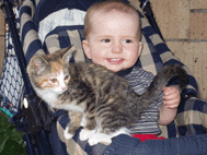 Außer Kühe und Kälber haben wir noch Katzen bei uns auf dem Hof.